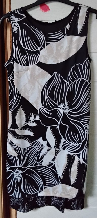 Schwarz-Weißes Kleid Gr: L esmara A-A: 56cm Rücken: 93cm 77% Polyester -- 20% Viskose -- 3% Elastan Preis: 4€