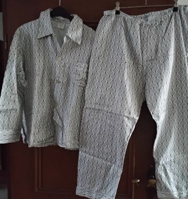 Grau-Brauner Schlafanzug gr: 52 Oberteil: A-A: 62cm Rücken: 65cm Hose: Bund ungedehnt:43cm Länge: 94cm 100% Baumwolle Preis: 4€